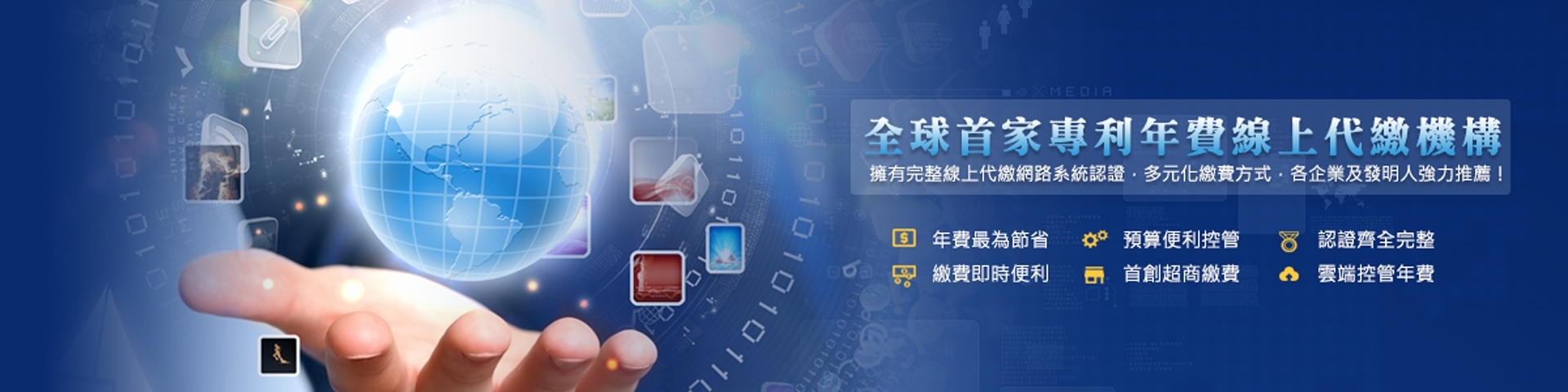 全球首家專利年費線上代繳,擁有完整網路系統認證,多元化繳費方式,各企業及發明人強力推薦