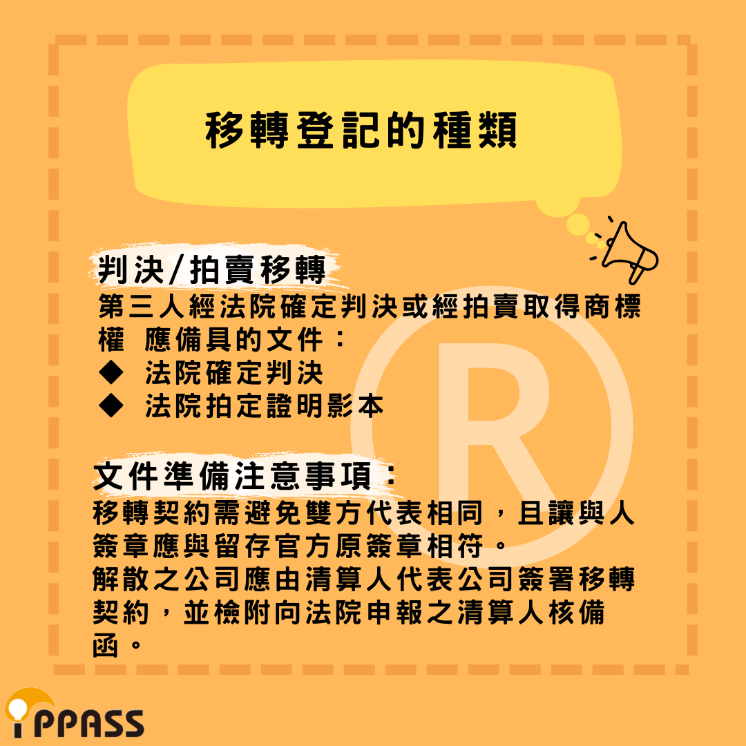 第三人經法院確定判決或經拍賣取得商標權,所需文件: