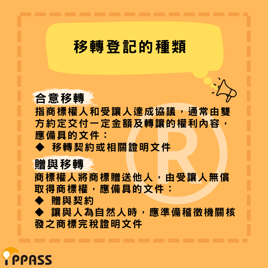 【合意移轉】商標權人和受讓人達成協議,通常由雙方約定交付一定金額及轉讓的權利內容,所需文件: